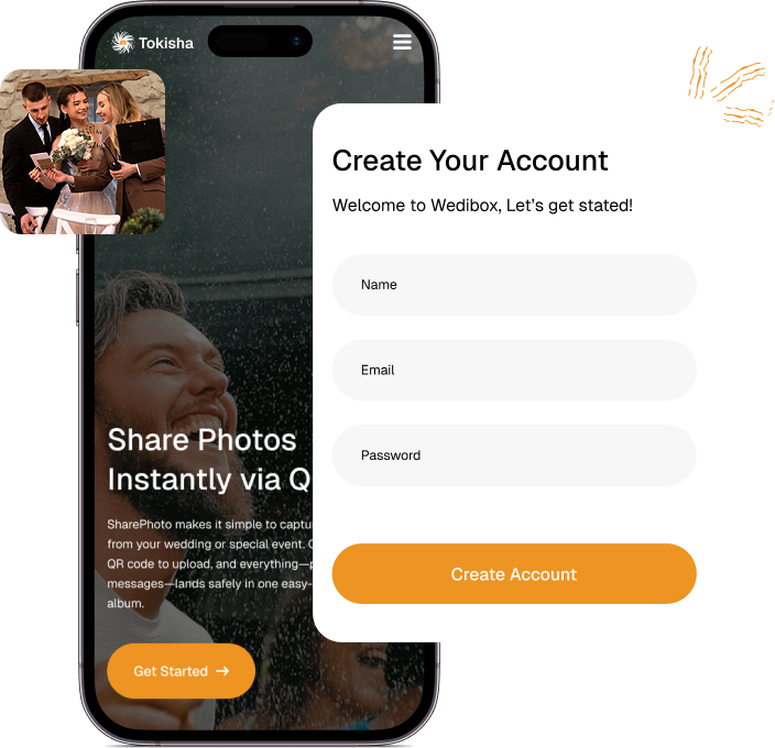 Create your free account in under 2 minutes and receive your custom photo sharing QR code instantly. No downloads or complex setup - just enter your name and event date to begin.